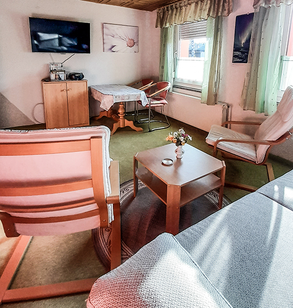 Ferienwohnung im Dachgeschoss unseres Wohnhauses mit seperatem Eingang für max. drei Personen.